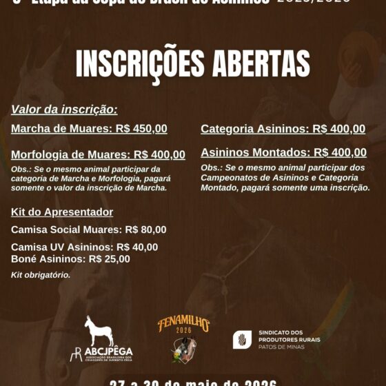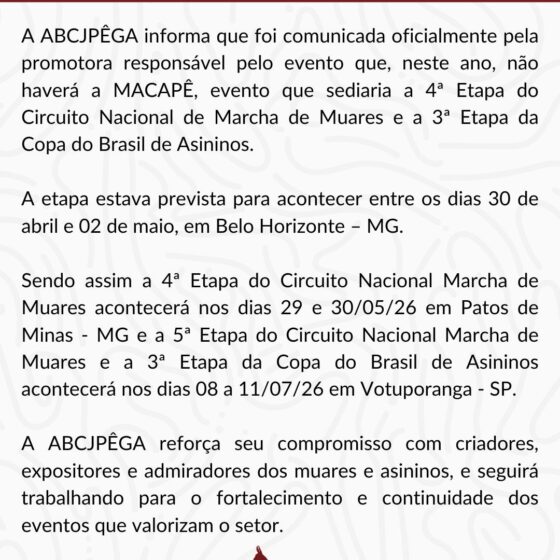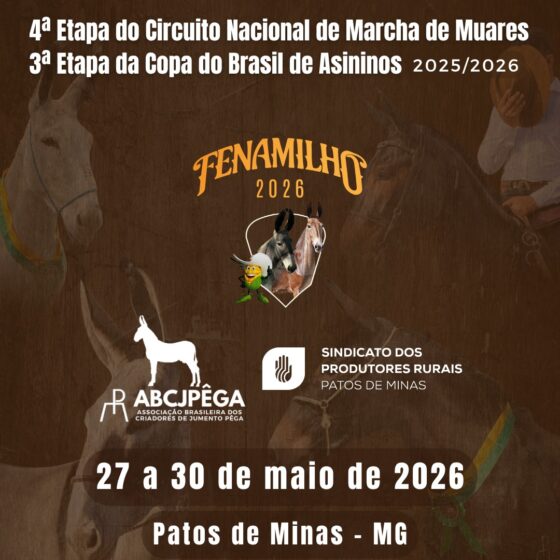 Vem aí a 3ª Etapa do Circuito Nacional de Marcha de Muares e 2ª Etapa da Copa do Brasil de Asininos 2025/2026 que