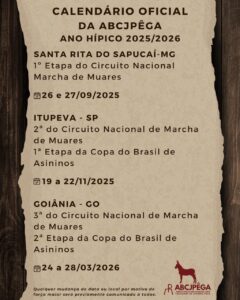 Confira o calendário oficial da ABCJPÊGA ano hípico 2025/2026